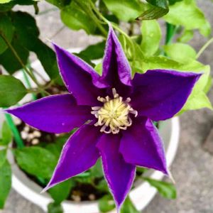 今晩は🤗☂️☔️ 今日も一日お疲れ様でした😊💐💐 我が家のクレマチスさんのHFヤングの花が咲き始めました(((o(*゚▽゚*)o)))♡💜💜💜 今年はお花がたくさん咲き、花の終わりに一回り大きな植木鉢に植え替えて、様子を見ていました。 ♪(๑ᴖ◡ᴖ๑)♪💜💜💜💚💚💜💜💜 気がつくと蕾があり咲くのを楽しみにしていました🥰👍 ◎ H.F.ヤング(早咲き大輪系)新旧両枝咲き クレマチスらしい花径12~15cmの大輪の花をたくさん咲かせる品種です。咲き進むにつれじょじょに色が淡くなる様子も美しい。四季咲き性が強く、4番花までしっかり咲かせることができます。丈夫で育てやすく、初めてクレマチスを育てる方にぴったりです。花期は5~10月。花屋さんの店頭で見かけるのはこの品種が多いです。 咲き始めで、梅雨入りなので花も痛んでしまいます😅 先程、玄関前に置きました🤗💐💐 綺麗な花を今日は丁度雨が上がったときに撮って良かったです。 ╰(*´︶`*)╯♡💜💜💜 💖💐☆☆☆☆☆*:.。. o(≧▽≦)o .。.:*☆☆☆☆☆💐💖