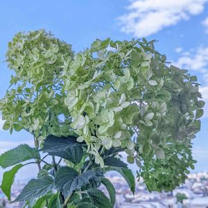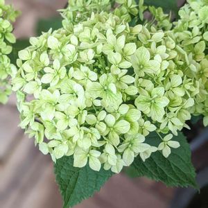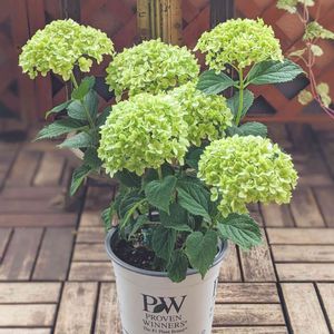 おはようございます😊 PWライムのアナベルコンパクト✨ 樹高90〜120㎝、丈夫な茎で、花色はライムグリーンから緑がかった白へ、その後またグリーンへ変化するとのこと。 2か月くらい前に届いたときは、小さなポット苗で「大丈夫?」と思ったほど。 今は4つの花を咲かせてくれています✨ 梅雨明けの太陽に当てたら、葉っぱが傷んで慌てて日陰へ避難。下から次の新しい葉っぱが出てきたので、ホッとしました🍀 霜が降りるころまで、次々咲いてくれるとのことなので、とても楽しみです✨✨ みなさん、良い1日を💖
