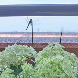 ライムのアナベルに立てた支柱が気に入ったようで、昨日からトンボさん遊びに来ています😊 暑くなってきたー🥵