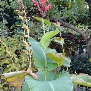 沖縄からのpic🔎とタンドクと出ます。 花と花後です。 カンナと似ていますが南国の花ですね。
