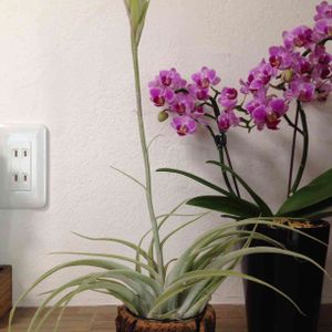 うちのカクティコラ。 4つの花房(?)全てからお花が咲きました🎵 カクティコラは次々とポンポン咲いてくれるのでとても楽しい❤️勝手にイチオシチランジアです☺︎