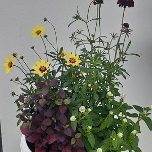 久しぶりの寄せ植えを作ってみました🌼🌿 コレオプシスムーンライト🌼 スカビオサ アルテルナンテラ 千日紅ちなつ(白) コレオプシスは初めてお迎えしました😊 耐寒性があり、冬は地上部が枯れますが、春になると芽が出て毎年お花が咲くそうです😊🌼