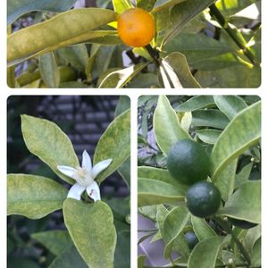 今日のお花 キンカン(金柑) ご近所のお宅のキンカンです🍊 黄色になったキンカンは今日、撮らせてもらいました。 下のお花と、まだ緑の実は昨年8月30日のものです🍊 コロコロしていて可愛いですね~☘️ でも道路に面しているので、環境は少し可哀想な気がします🌿
