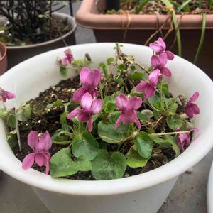 室内のシクラメンとニオイスミレの可愛さに、雨降りでもほっこりします😋