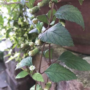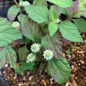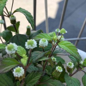 メキシカンスイートハーブ このポツンとした花に目がいって 気に入って先週お迎えしたハーブ🌿 お砂糖より甘いとあったけど ステビアみたいな感じかな? 食すつもりはないので このポツンとコロンとした小さな花を楽しみたい☺️
