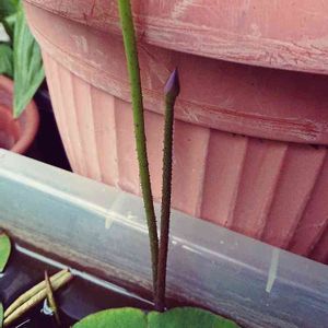 新葉はアスパラガスみたいにニョキっと出てくるけど、ひとつ気持ち丸みを帯びた葉が。もしや、蕾か?様子見。