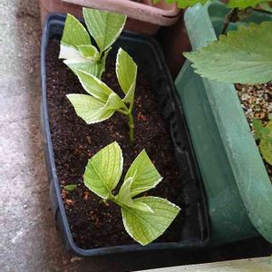 葉っぱに模様がある紫陽花の挿し木をしました😄 相性が悪いのか いつも枯れるけど。 どうしても欲しい〰️😆 根付いてね〰️😆と願いがら🤩