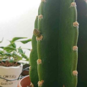 様子を見るために鉢を回したら、花芽が付いてました💕 このサボちゃんも花が咲くのか😳😆😍 次は腕が出てくるかと思ってたから、嬉びっくり😍