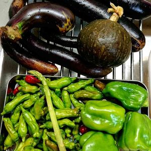 最後のナスさんです😚 出来は悪いけど😅💕 夏過ぎてやっと元気が出てきたピーさんとシシさん😄 回りは植え替えてるのに❗ 抜きに抜けず💦😂😂💦来年は植える場所考えなきゃね😎✋