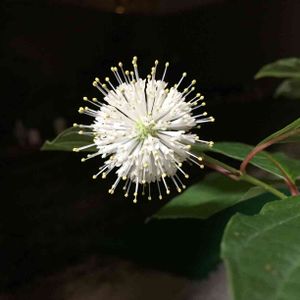 谷渡りの木 花、咲きました。 打ち上げ花火みたいな まん丸な花です。