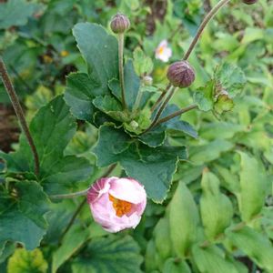 ピンクのシュウメイギクが咲きはじめました😊 半日陰になる場所でホトトギスと競い合い😁