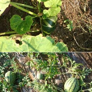 暑くなる前に草むしりと畑に行ったけど💦6時半では遅かった😣汗だく💦 カボチャと小玉スイカが実をつけてますが、受粉は虫さんたちにお任せしているので、特に小玉スイカはいつ収穫していいのかわかりません😅 以前育てた時も、早すぎて薄ピンクだったり、亀裂が入ってアリさんのオヤツになったり…ポンポン叩いたりしたけど❔ 受粉日から換算する以外に見分ける方法は❔