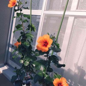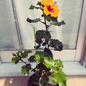 この夏も去年のハイビスカスが咲き始めました😊 去年買った頃はやや黄色っぽいオレンジ色でしたが、今年は初めからオレンジ味が強いようです。