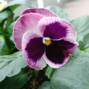 種から育てた初めてのパンジーです。この寒さの中やっと一輪咲いてくれました。 どんな色かなぁ~と覗き込んだら綺麗な紫💜 他の色も楽しみです😀