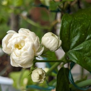 いつもご覧頂きありがとうございます😊 アラビアンジャスミン 🤍🤍💕「茉莉花」🤍 八重花 香りが広がっています♪ 開花期 7〜9月 お花が咲くのは2回目です 小さくて可愛い💕