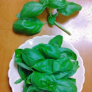 摘芯がてらバジル収穫、いい香り。DAISO産の種。 今晩はシンプルにオリーブオイル塩パルメザンチーズでパスタかな!?🍝 前に上げた茄子の花、しっかり落花しました😭次の花に期待。 2回目のミニトマトは前より少し甘くて今後が楽しみ🍅