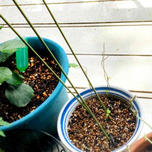 あまりにも風が強かったので室内に避難していた桔梗咲きアサガオ君。 朝起きたらツル半分と葉っぱが無くなっていました🤦♀️ 🐈の仕業です笑 柔らかくて美味しかったんだろうなぁ…。