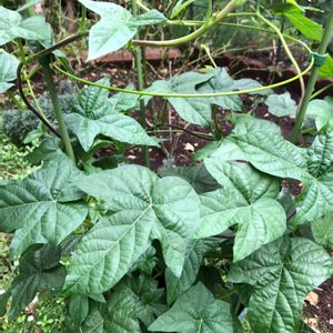 朝顔 勝手にツルがふえてきてます 花の赤ちゃんらしいものが😃 何色の花が咲くのかな〜🎶