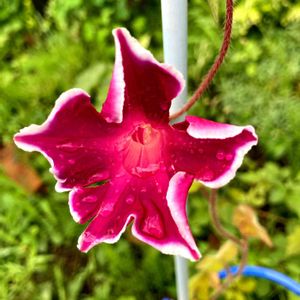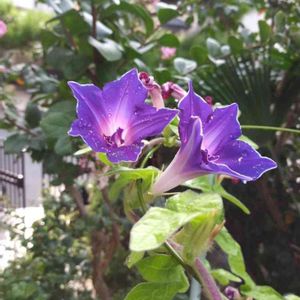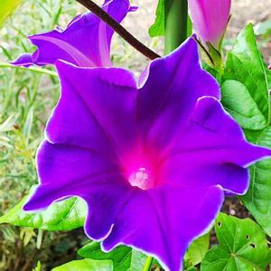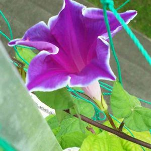 雨降りの毎日 放置気味だった朝顔 鉢をくるっと回したら 咲いてました! 紫色だったのね 咲いてくれてありがとう😊 ツル ボーボー なんとかしないと💦