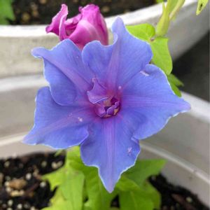 ブルーの桔梗咲きアサガオ😃 中心から花びらが出てるのは 奇形では無くて、そういう品種なんです😉