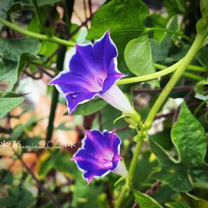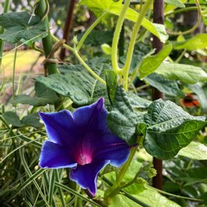 今日のお花「アサガオ」 花友さんから頂いた種…2種類 朝顔ミルキーウェイ&桔梗咲き朝顔 それと昨年のを種とりした 「るこうあさがお」 🎈フウセンカズラも一緒に種まき 左手には黒ホオズキもいます🖤
