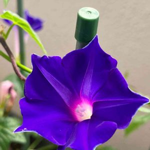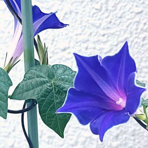【桔梗咲きさんもおはよう】 昨日に続いて桔梗咲き朝顔さんが二つ 顔を見せてくれました。 一つは開ききって。一つは半分開いて。 5月からずっと楽しみにしていました。初めまして(*´▽`*) パッケージに「桔梗咲き」ってあったけどあまりそう見えませんが、咲いてくれたので良しとします(*^^*) もう一つ 西洋朝顔さんも お寝坊さんで半分も起きていませんが、今日も開いてくれそうです。 だけど 今から仕事なので帰ったら萎んでいそうです。 朝顔が開くのがこんなに嬉しいなんて(≧∀≦)