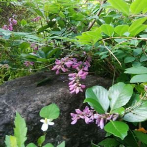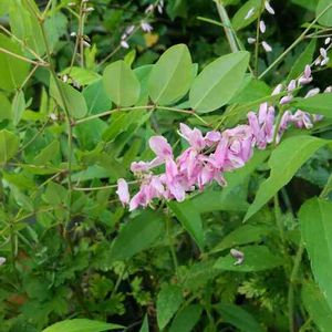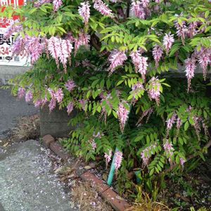 毎年アパートの敷地の小径脇に咲くこの花。 藤みたい。もう少ししたらピンク色の綺麗な花がたくさん付くかな。