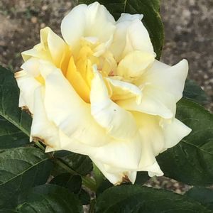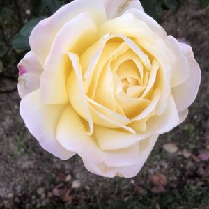 薄い黄色と薄いピンク色が入った白い花びらが美しいフランス🇫🇷製のバラ「ピース✌️」をパチリ!📸🌼🌿🤗 1945年第二次世界大戦が終わった年に、平和を願って作出されました。🕊️😊🌞✌️