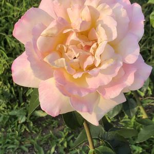 昨日、茨木市の若園バラ園にて、夕日に薄らピンク色に輝くフランス🇫🇷製のバラ「ピース」をパチリ!📸🌸🌿😊😄🌆✌️