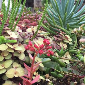 シノクラッスラ・インディカさんの お花さんが咲き出しました😻💗💚💛 このコは落ちた葉っぱちゃんや種で 簡単に増えるので 植えた覚えのない所で大繁殖してたりします😺