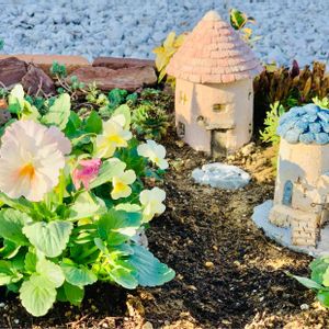 モルタルハウスのある花壇がお気に入り💕 映ってないけど、ベロニカハミングバードや多肉植物、ヒューケラなどあります。 宿根草と一年草をバランス良く植えるの難しいけど、楽しい!