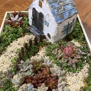 とっても素敵な モルタルハウスを🎁していただき 大切な宝物˚✧₊⁎となりました どうやって飾ったら…🤔 これから雪が降り始める新潟では 外は無理なので 箱庭風にしてみました 題して 「植物に囲まれた 小さな郵便局🏣」 花や小鳥の切手をたくさん揃えてます ナンテネ♪ 春まで室内で楽しみたいと思います♬