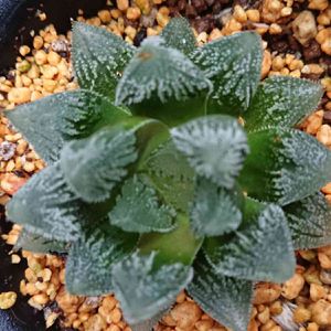 🌵おはよぅございます🌵 「ハオルチア・ ヘルバセア(姫綾錦)」 綾錦ってアロエじゃなかったけ❓ この子は、上から見るより横から眺めたい👍