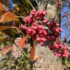 マユミの実 ピンクと赤がキレイです 散歩中に見つけました