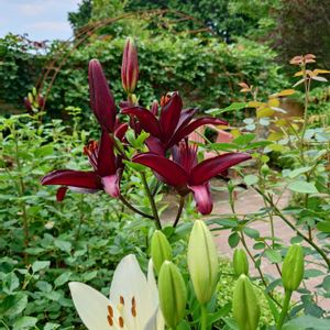 7月 始まりましたね·͜· ꕤ︎︎ 今月もよろしくお願いします😊 ① 昨日行った蒜山のハーブ園 真紅と純白の百合が綺麗でした✨ チラッと赤いベンチも見えますね(^_-)-☆ ② 燃えるような真っ赤なコリウス❤ お迎えしても植えるところが無いので😅 🤳カシャだけにしました( *´艸`) ③ 🏷⸒⸒カレンダーの日 参加します
