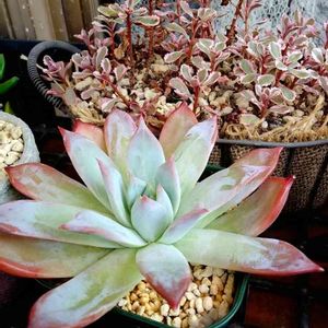 こんばんは。☔️に濡れた後の多肉さんと でかにゃんこ 中学の息子も抱っこが難しいらしいです🤭 重い😫 上 ブランディティ×コロラータさん1つが3つになりました🌱🌱🌱 下 七福美尼さん