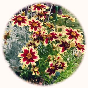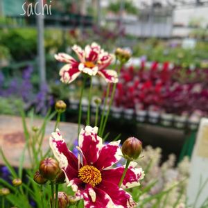 コレオプシス『ルビーフロスト』 コスモスのような雰囲気で、初めて見ました。 調べたら、コレオプシス属の種間交配で2010年新品種のコルオプシスです。 濃い赤色に白の覆輪(ピコティ)が入っています。 暑くなるにつれ黄色の覆輪になる品種。 キク科 コレオプシス属(キンケイギク属、ハルシャギク属) 和名: キンケイギク 原産地: 北アメリカ 開花期: 6〜10月(四季咲き生が強い)