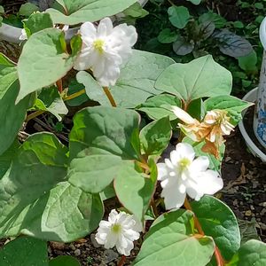 ドクダミ3姉妹✨ 普通のドクダミと、八重咲きのドクダミ 花が咲いてないと、どっちがどっちか分からない😅