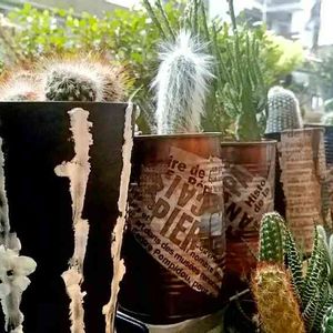 おはようございます😃🌇🐔 昨日のおね蔵Garden📷✨ サボテン園みたいになってます🌵 奥スクエア缶は、先日のfrom Westで錆サビ感が気に入り、購入しました( ´艸`)♡ 早速ステンシルして設置( ´ ▽ ` ) 皆さま、今日も素敵な一日をお過ごしくださいませ🎶