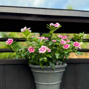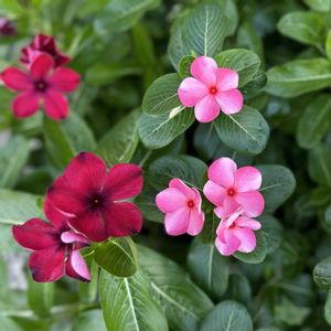 こんばんは🌟 うまく撮れなかったけど ビンカ・ゆずあいす(上の丸い花弁)と フェアリーミント(下のシャープな花弁) 3年目のフェアリーさんも咲いてきました🌼 そろそろ2品種とも✂️かな~
