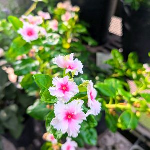 ビンカ(日々草) 北島園芸さん 茜花火キメラ咲き~茜花火枝変わり 昨年も育てたお気に入りです🌼 1つの株で、2~3種類の形のお花が咲きます。 φ(..)2025.6.15 10号平鉢に花苗植え付け