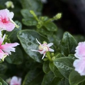 雨上がりの日々草☔️🌥️ 奔放ガーデニングやってますが ニチニチソウは綺麗に咲いてる ちょっと見ただけで、3匹のなめくじくんと目が合ったから、帰ったら隠れる君のこと絶対に見つけるね……🌟