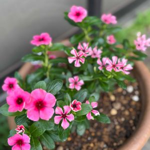 ニチニチソウ ピンクパンサー🌱 今年初めてお迎えした北島園芸さんのピンクパンサー🩷 派手だけど華やかで可愛いニチニチソウです♪