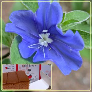 こんばんは(*^^*) 今日も一日、お疲れ様でした。 忘れるところでした!! #毎月15日はいちごの日 発動中🍓 福岡あまおうの、いちごカステラ♬♬と、 大好きなアメリカンブルー💙をコラボりました。 一苗しか残ってなくて・・・。 もう一苗、欲しいところよ〜ん(*^^)v 園芸店に入ってくれるかな〜♬ なぜかこの娘は、へしゃげて咲いてて、 なんか面白くてパチリ📱しました🤣