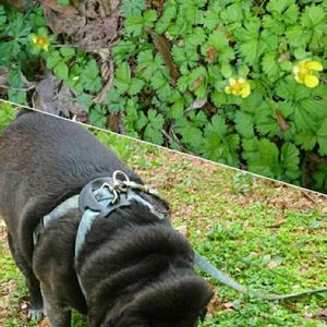 今日の風は半端じゃないです。風の中、グーさんのお散歩‼️ あれ、この葉っぱいつもの雑草ではないな。 黄色いお花も咲いてます。 分かるかな❔❔ クイズにしてみましよかね。