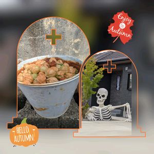 おはようございます(*^^*) まさか、同じ町内で、すんごいハロウィン飾りを目の当たりにするとは‼️‼️‼️ びっくりして、助手席から大急ぎでパチリ📱。 近寄りがたいかも・・・💧🤣🤣🤣 そんな写真とコラボさせたのは、 ちょっとお洒落な金属バケツに入ってた、 大量のフウセンカズラの実です♬♬ なんか、ハロウィンに合ってる⁉️(笑)
