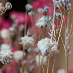 こんばんは(*^^*) 今日も一日、お疲れ様でした。 #今日のお花 発動中です。 こちらはドライフラワー完成‼️のカスミソウ。 赤と白をやったと思ってたんですけどね、 吊るした状態から下ろしてみたら、あれ⁉️って。 蕾ちゃん、色が付いてますよね? カスミソウの白花、蕾(萼?)はこんな色でしたっけ??