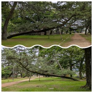 こんにちは(*^^*) #木曜木質 発動中です🌲 琴平町に行ったときの写真です。 立派な松が臥龍のように横たわっていたのでパチリ📱 2本ではなく、表側からと裏側から撮ったものです♬♬♬ 小さかったら、跨がって遊んだかも〜🤣