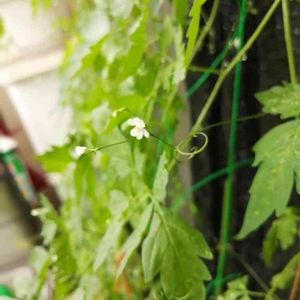 ベランダのフウセンカズラ、花が小さくて可愛いです。 なかなか見がつかないので、一つ積んで、他の花にツンツンしてみたら見が付き始めたのですが、人工受粉として正しいのかな