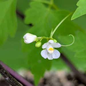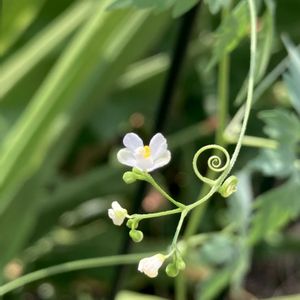 今朝 雨のやみ間に外へ フウセンカズラの花が咲いていました✨ 白く小さな可愛いお花🤍✨ ツボミも可愛い🌿 まだ全然伸びてないけど これから楽しみです😄